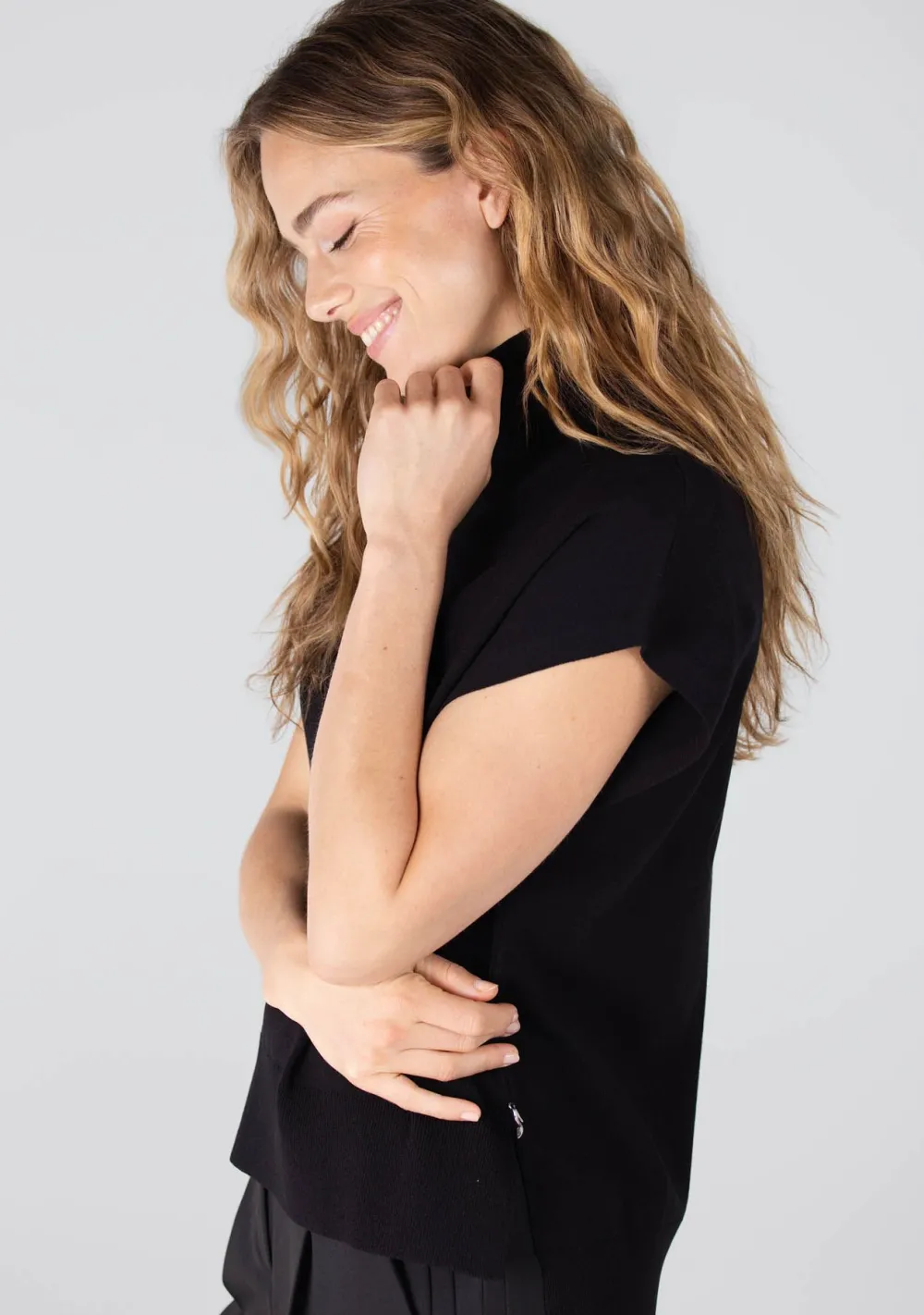 – Het model is 1.78m lang en draagt maat S