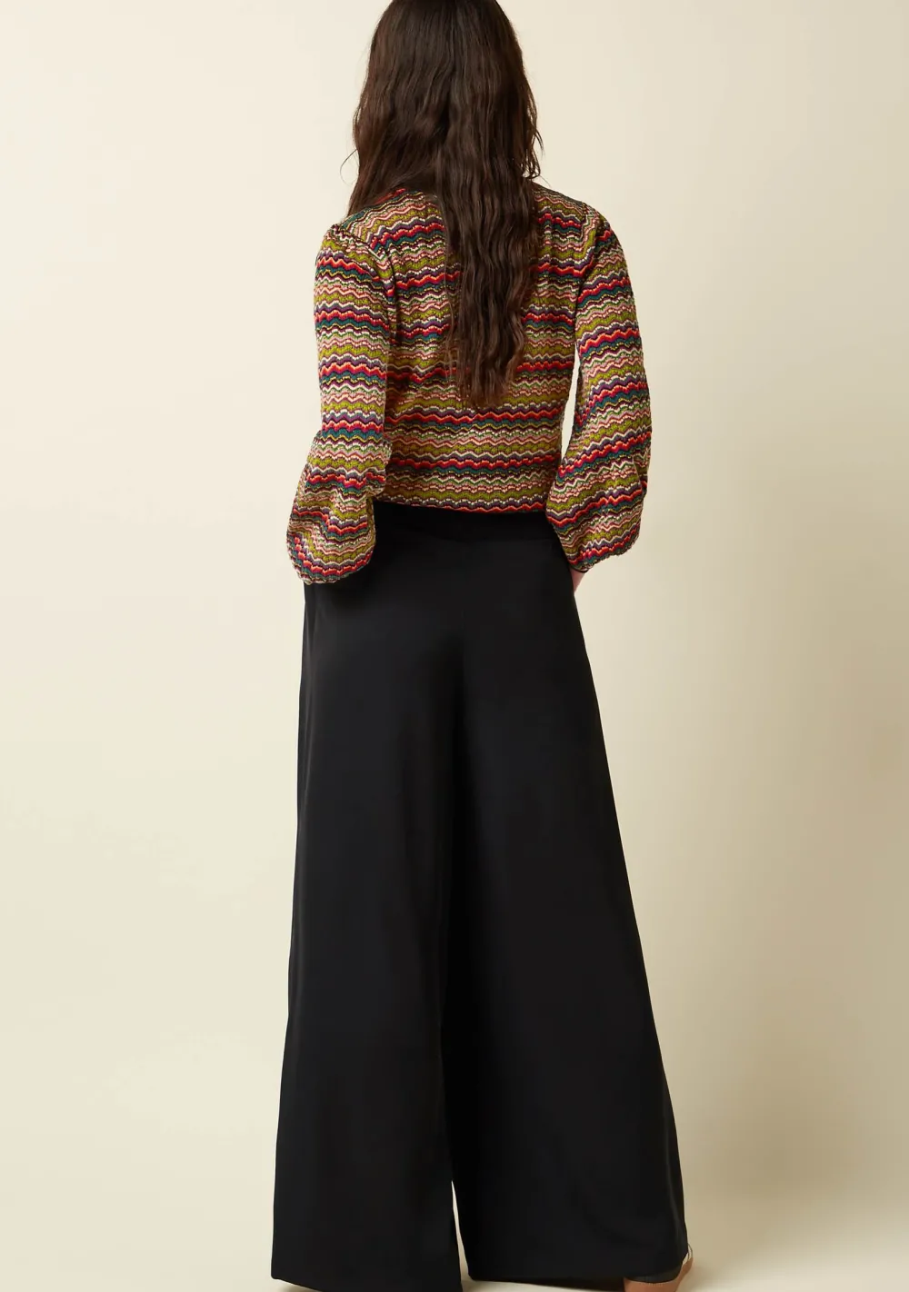 – Het model is 1.74m lang en draagt maat S