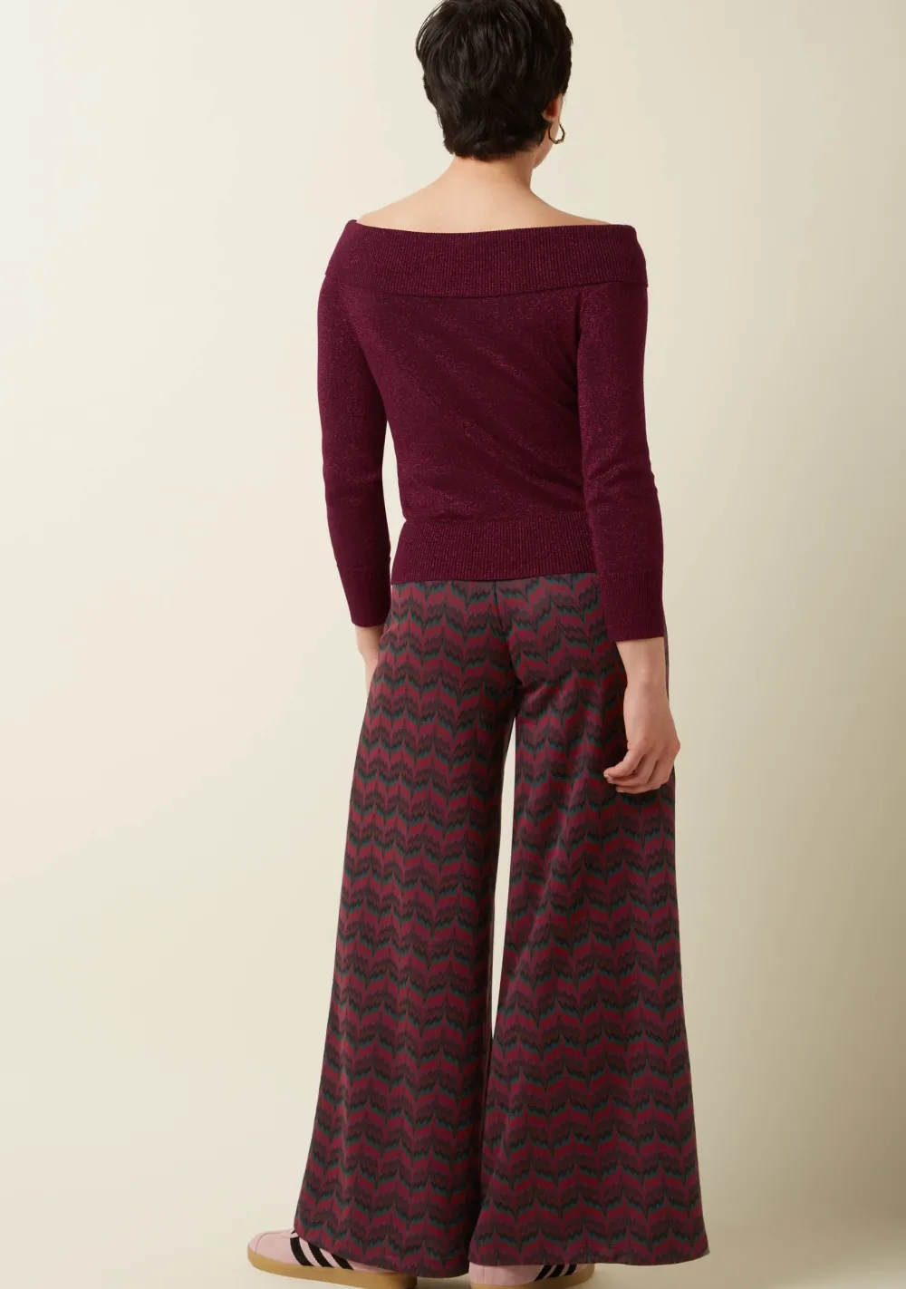 – Het model is 1.70m lang en draagt maat S
