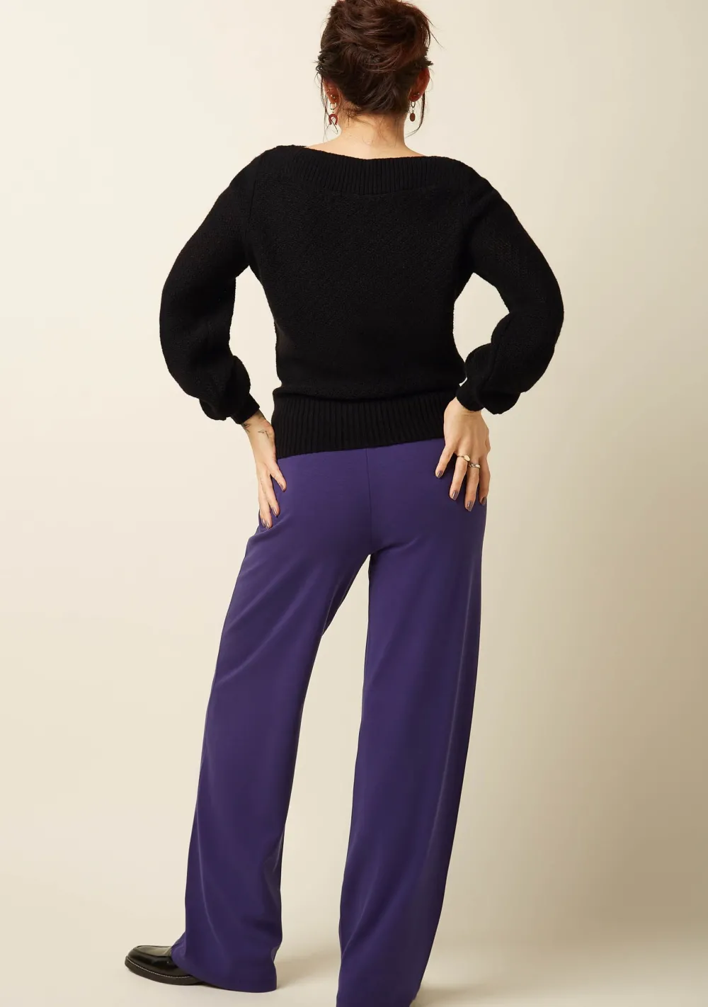 – Het model is 1.76m lang en draagt maat S