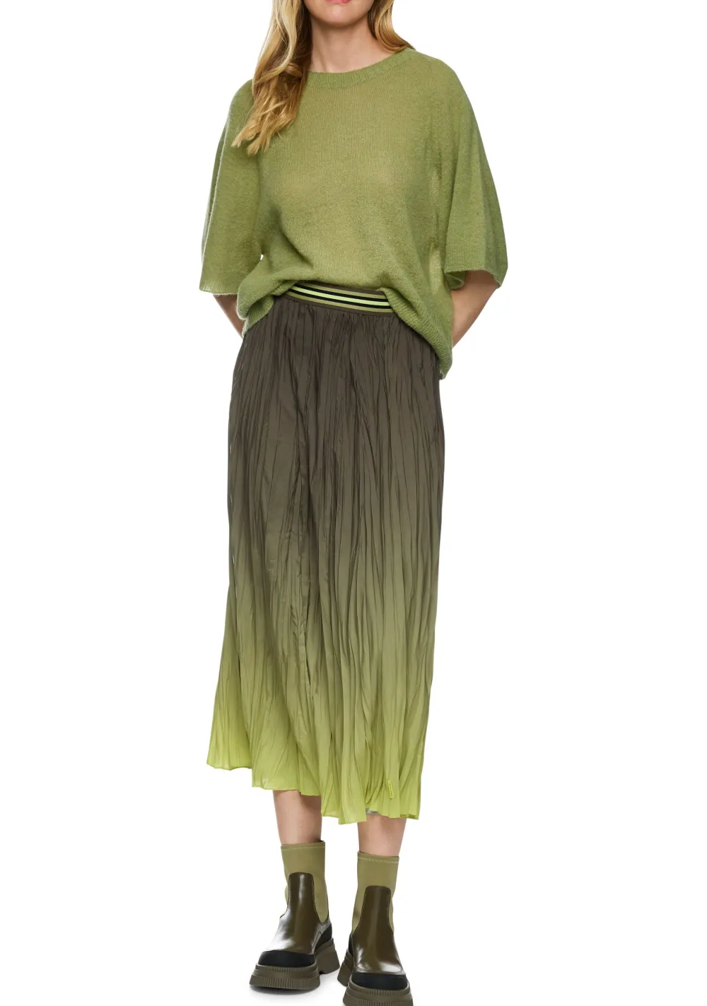 – Het model is 1.76m lang en draagt maat 36