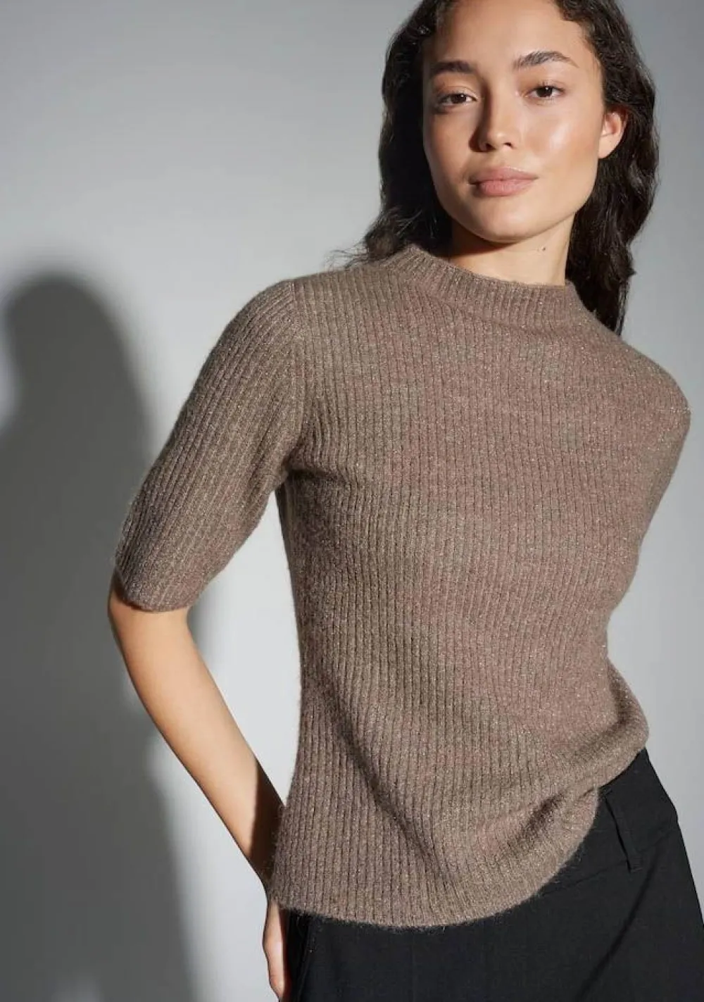 – Het model is 1.77m lang en draagt maat 36