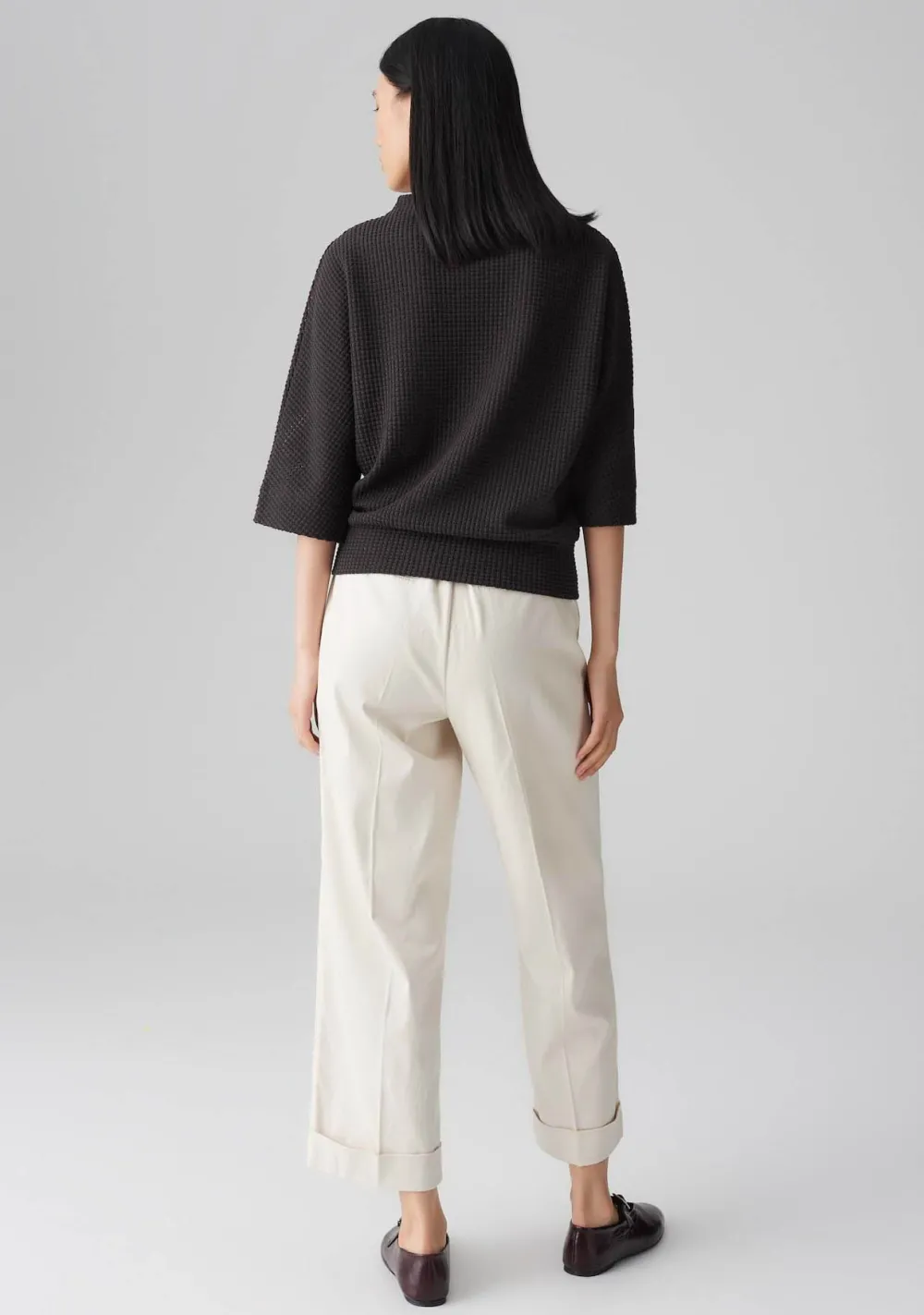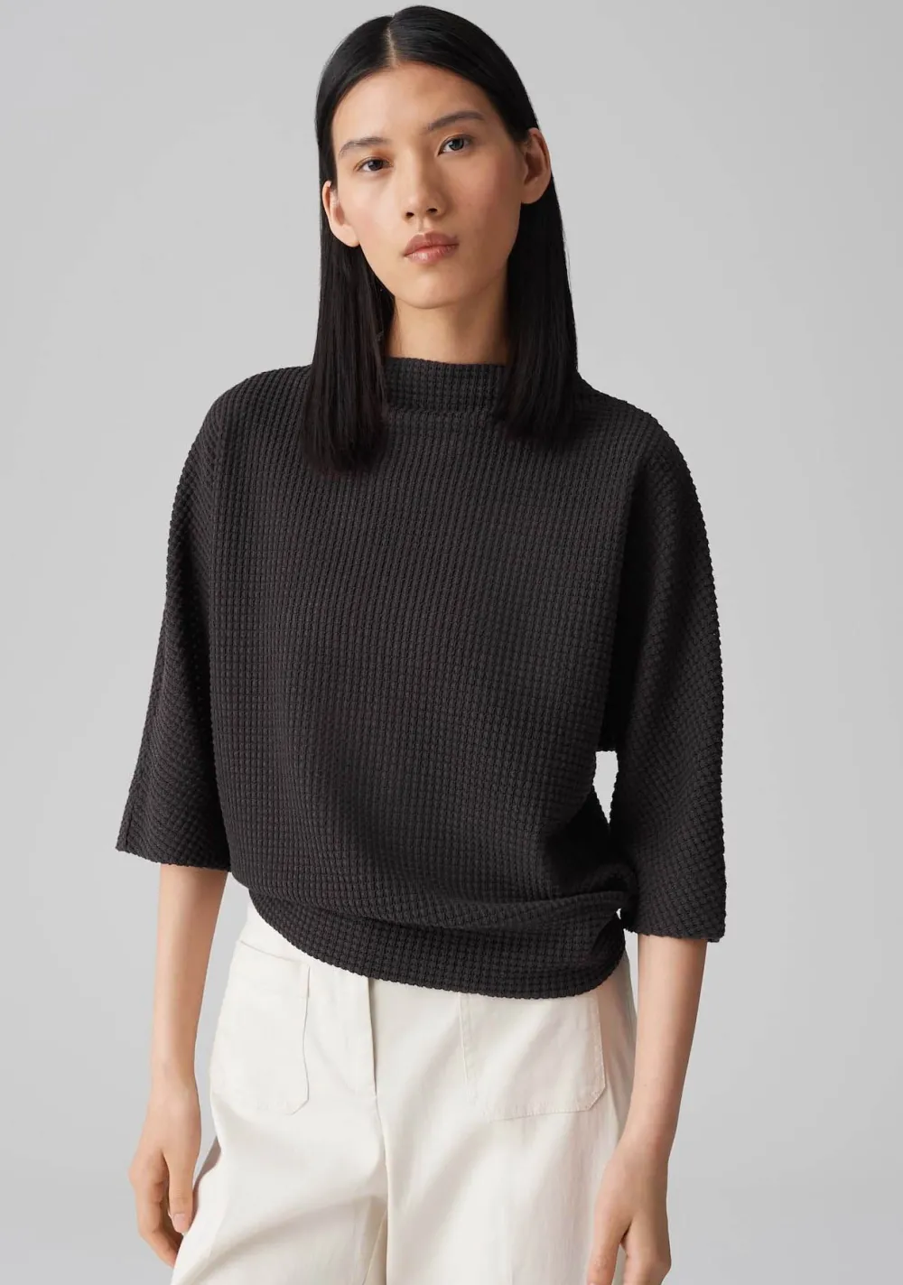 – Het model is 1.77m lang en draagt maat 36