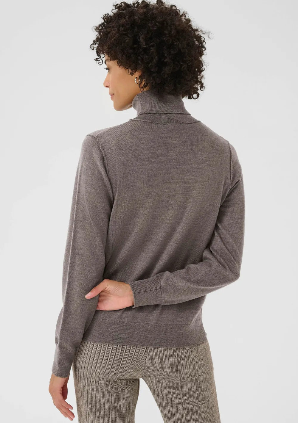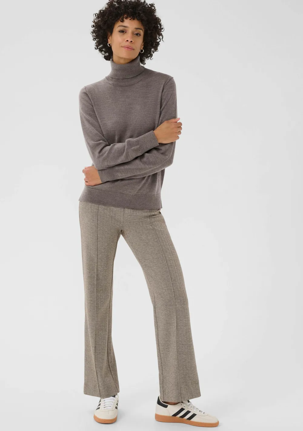 – Het model is 1.76m lang en draagt maat S