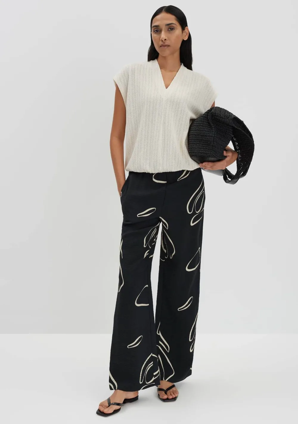 – Het model is 1.76m lang en draagt maat 36