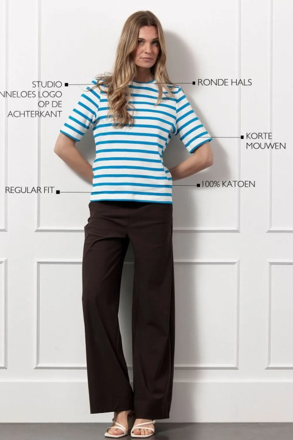 – Het model is 1.79m lang en draagt maat S