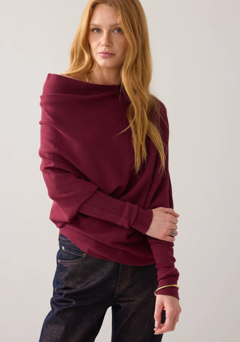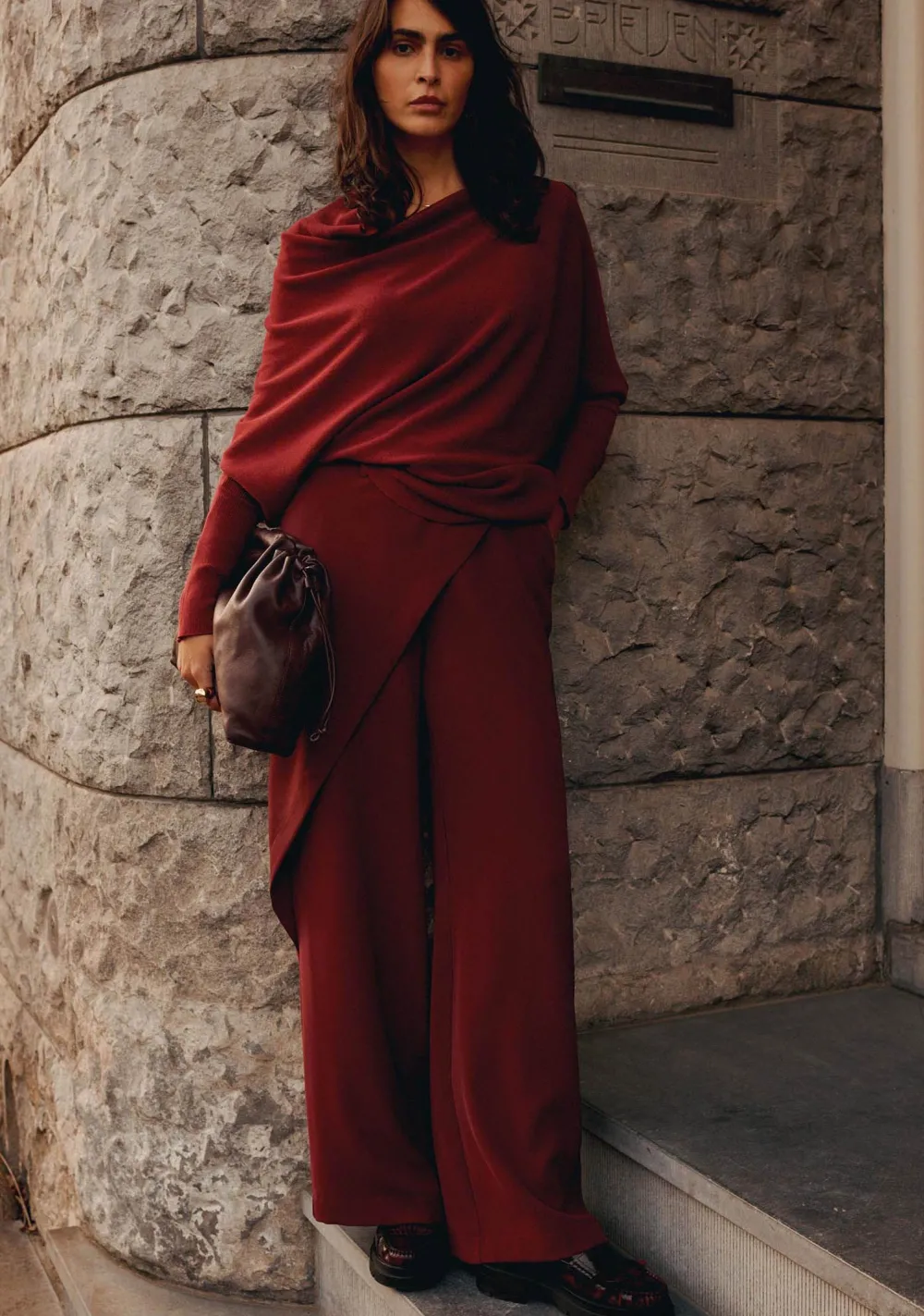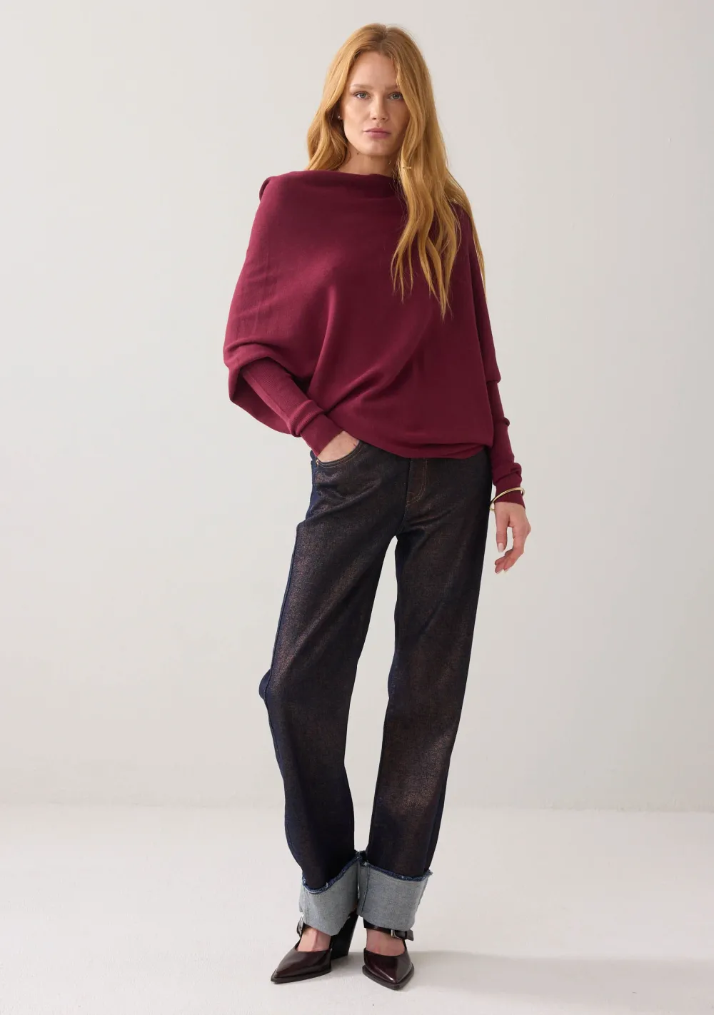 – Het model is 1.77m lang en draagt maat S