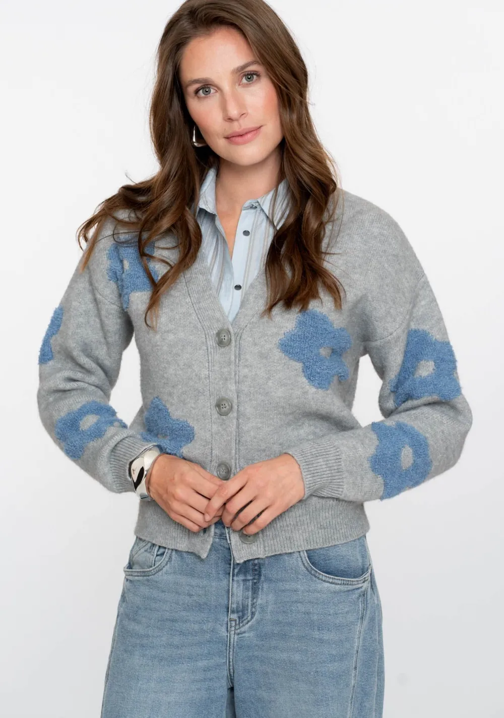 – Het model is 1.76m lang en draagt maat S