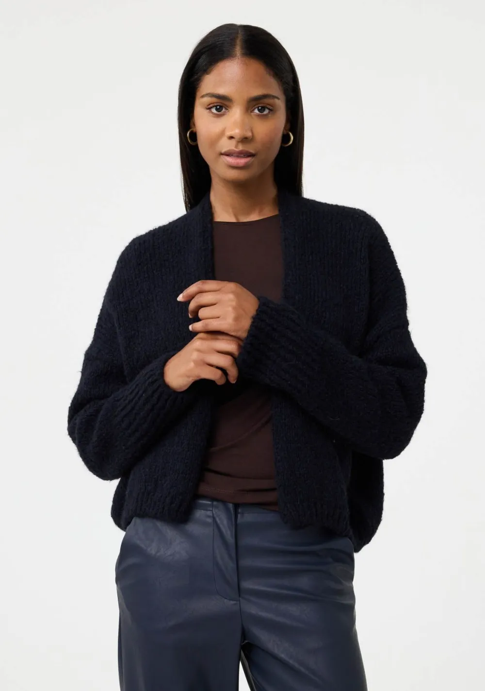 – Het model is 1.76m lang en draagt maat S