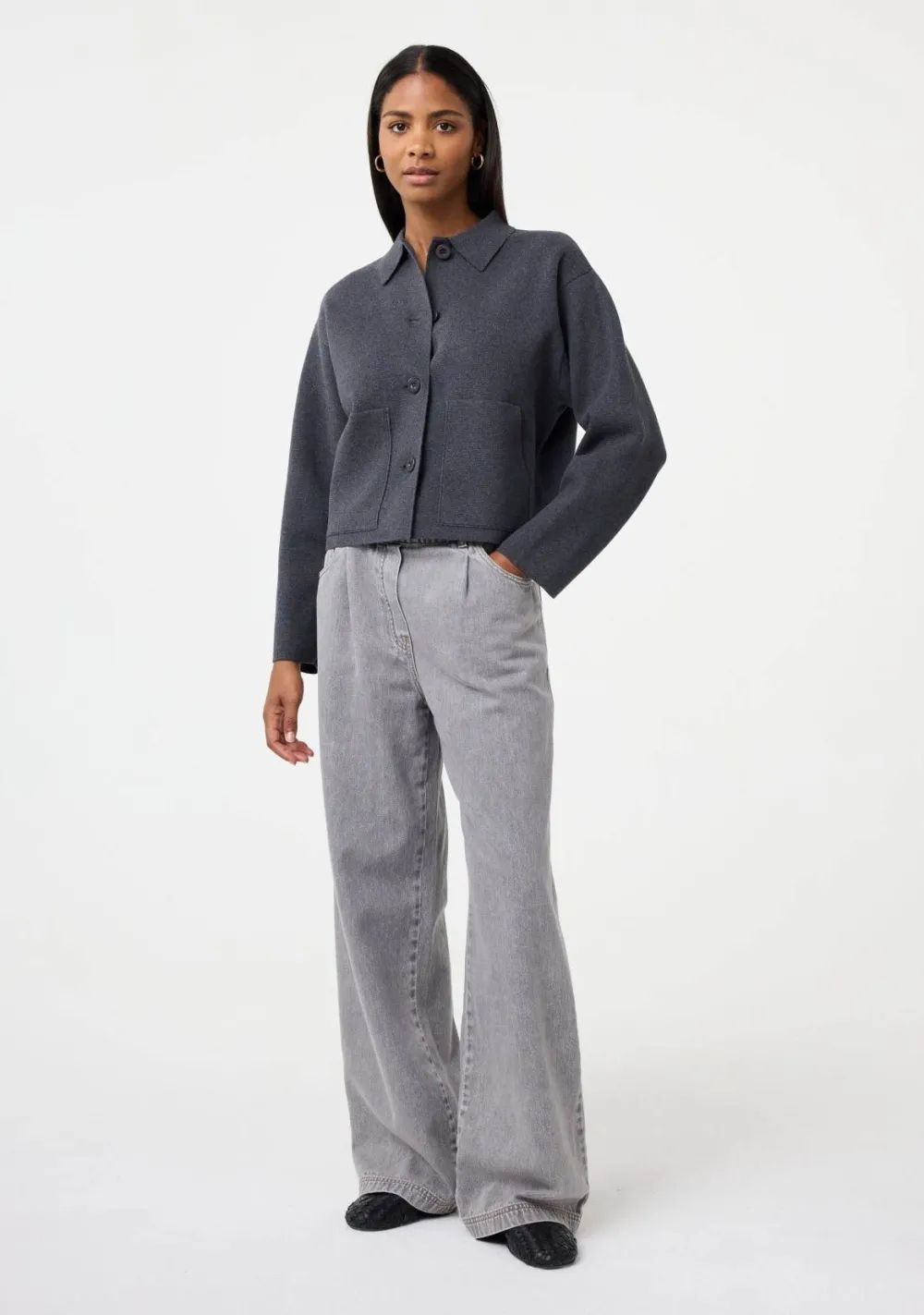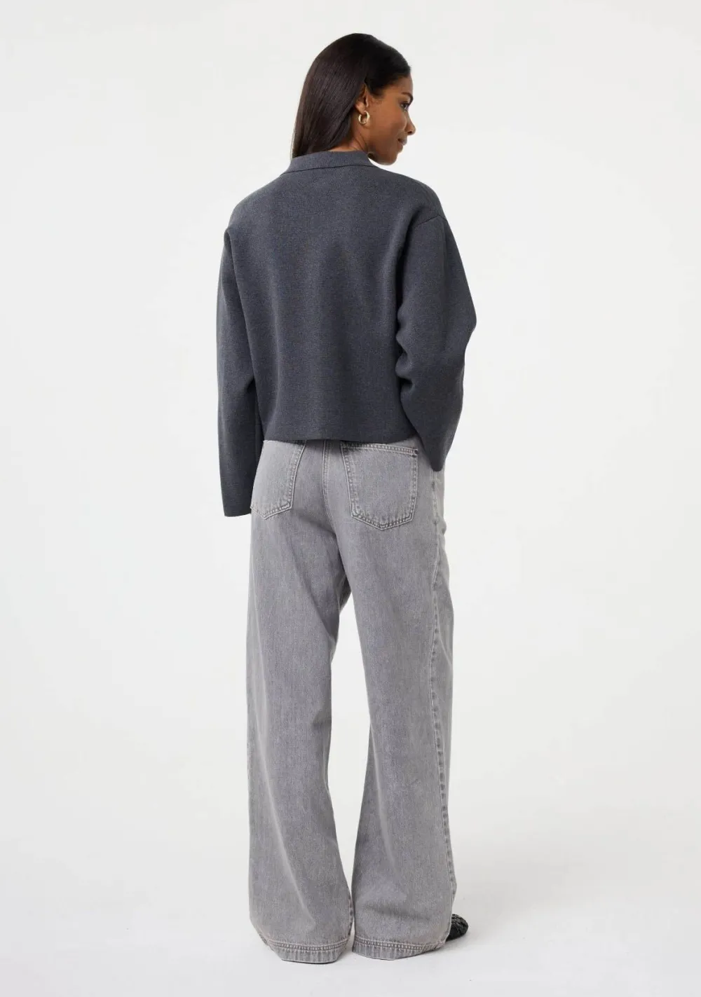 – Het model is 1.77m lang en draagt maat S