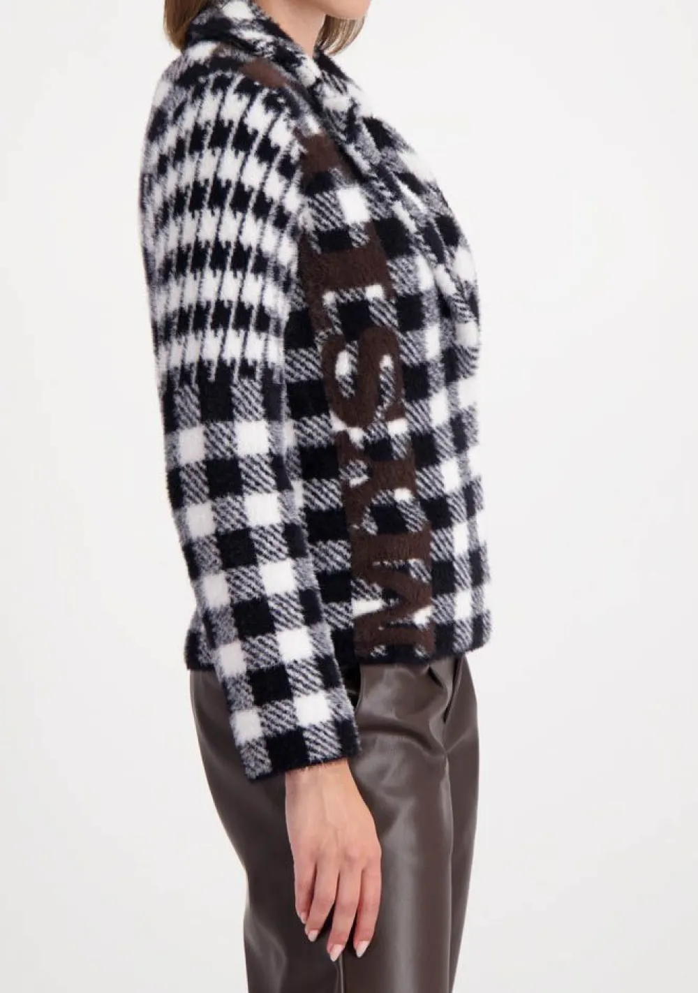 – Het model is 1.80m lang en draagt maat 38