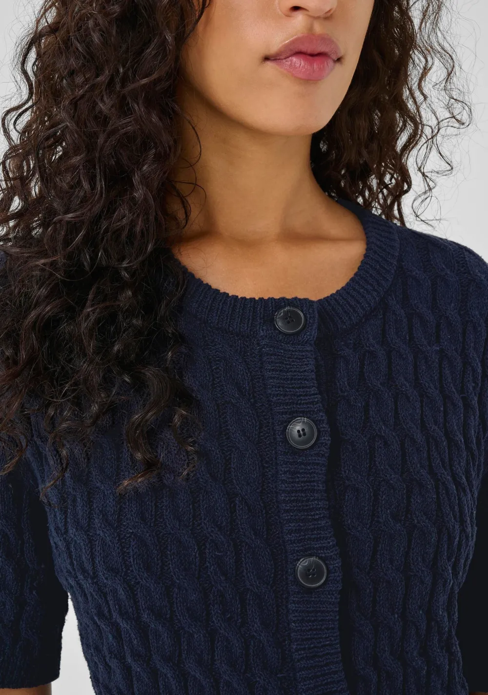 – Het model is 1.76m lang en draagt maat S