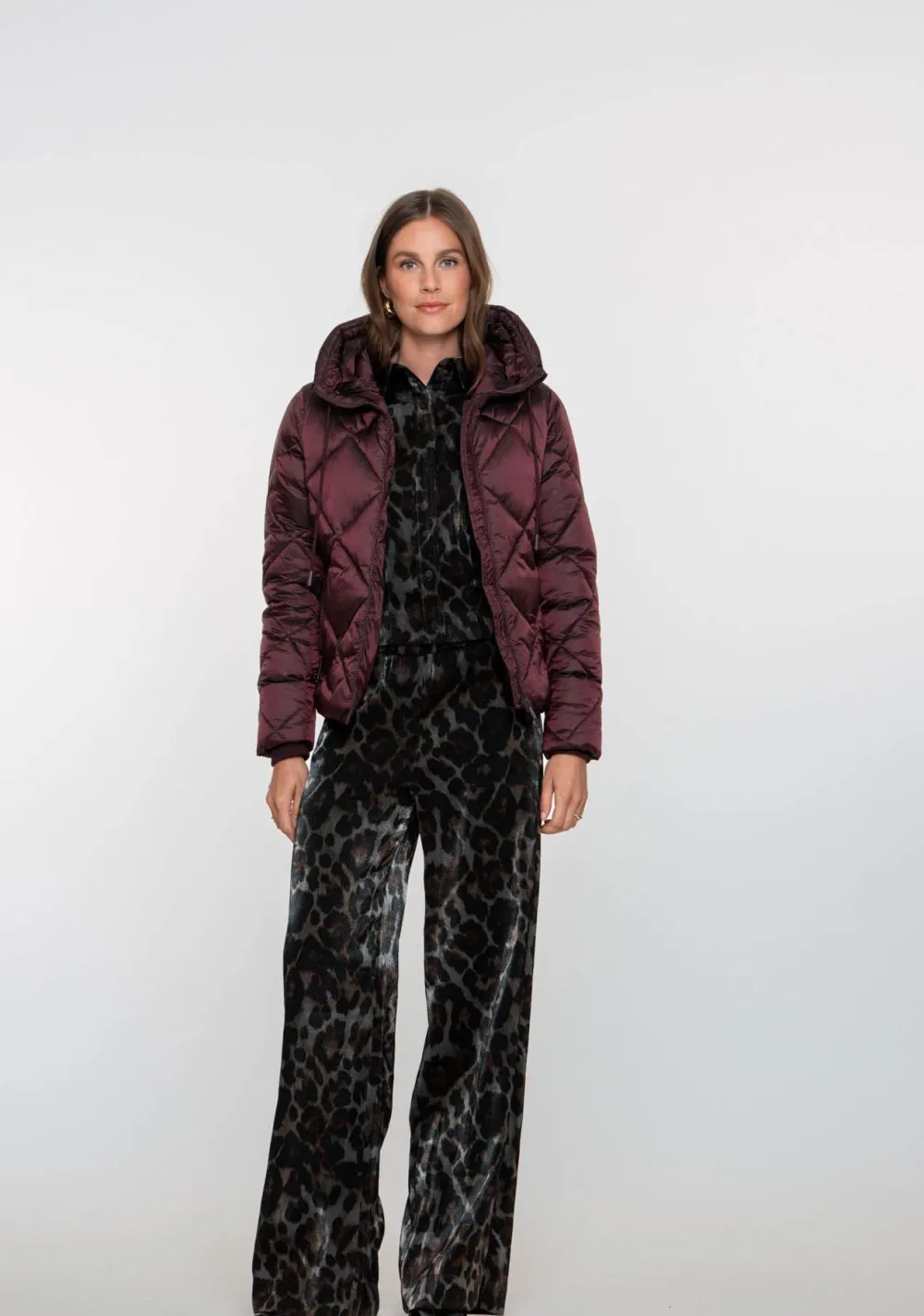 – Het model is 1.76m lang en draagt maat S
