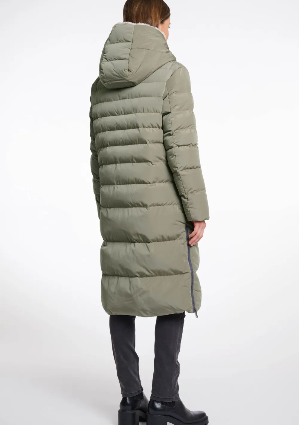 – Het model is 1.76m lang en draagt maat 36